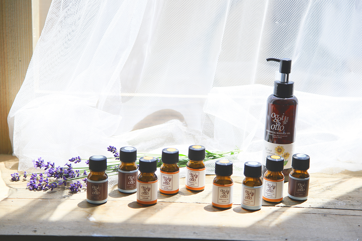 その日の体調や改善したいお悩みに合わせて選べる9種類のブレンド精油は